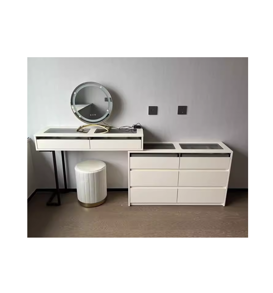 This cabinet has ample drawer storage space, with compartments at the top for organizing items. It can be combined with other cabinets for placement and use